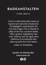 Opdag Badeanstaltens Lavendel Salve, din hudplejes redningskrans. Med dens unikke egenskaber kan den bruges til en lang række formål - fra at pleje tørre områder på kroppen og i ansigtet til at hjælpe med sprukne læber, rifter og tørre neglebånd. Når vinteren kommer, er den din bedste ven til at lindre rød og sart hud ved næsen under en forkølelse.